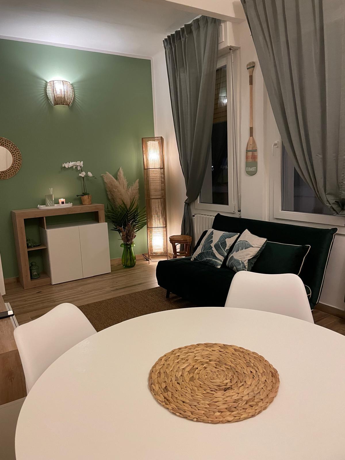 Arredata con eleganza nei toni del verde salvia, questa abitazione è perfetta per coppie in cerca di un angolo di relax al mare, ma anche per chi desidera esplorare le bellezze dei dintorni.